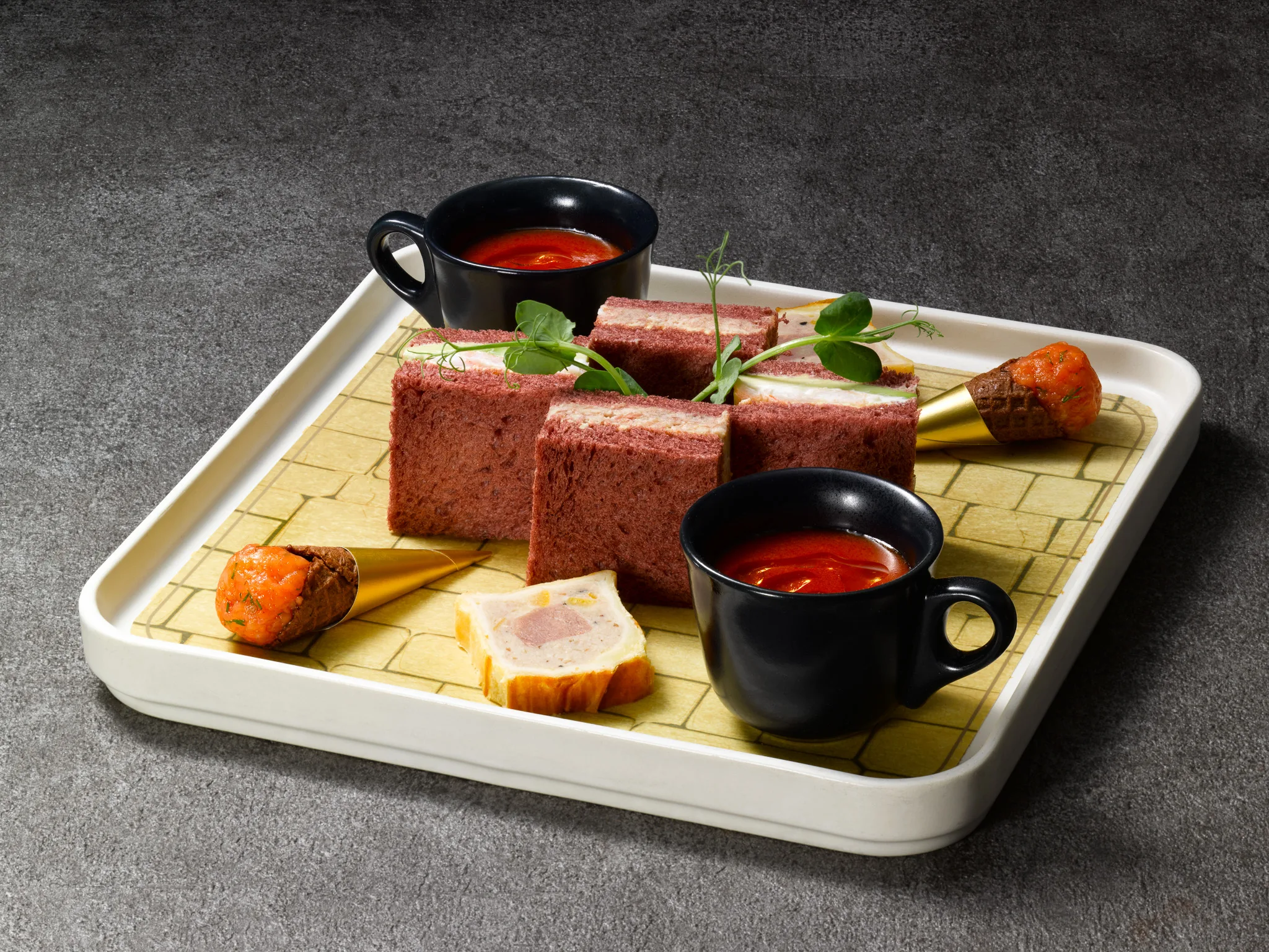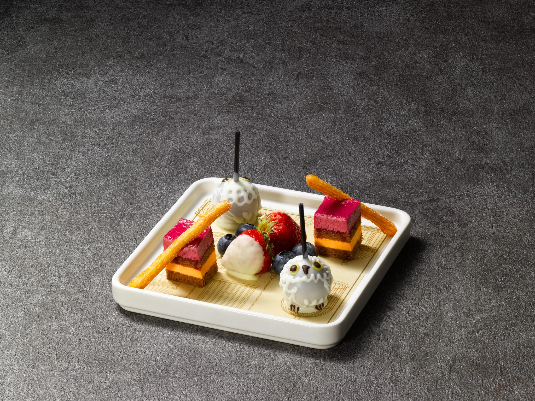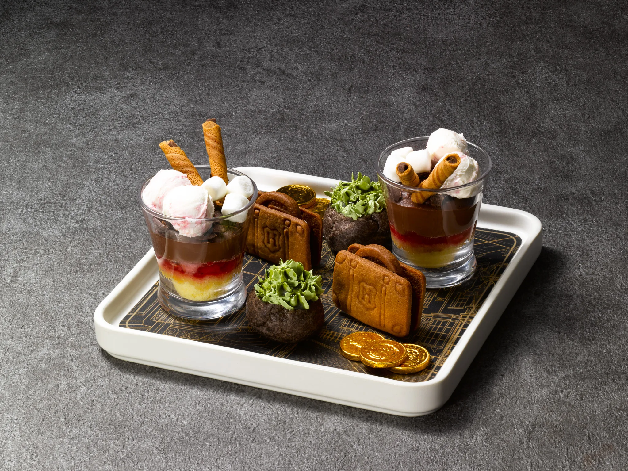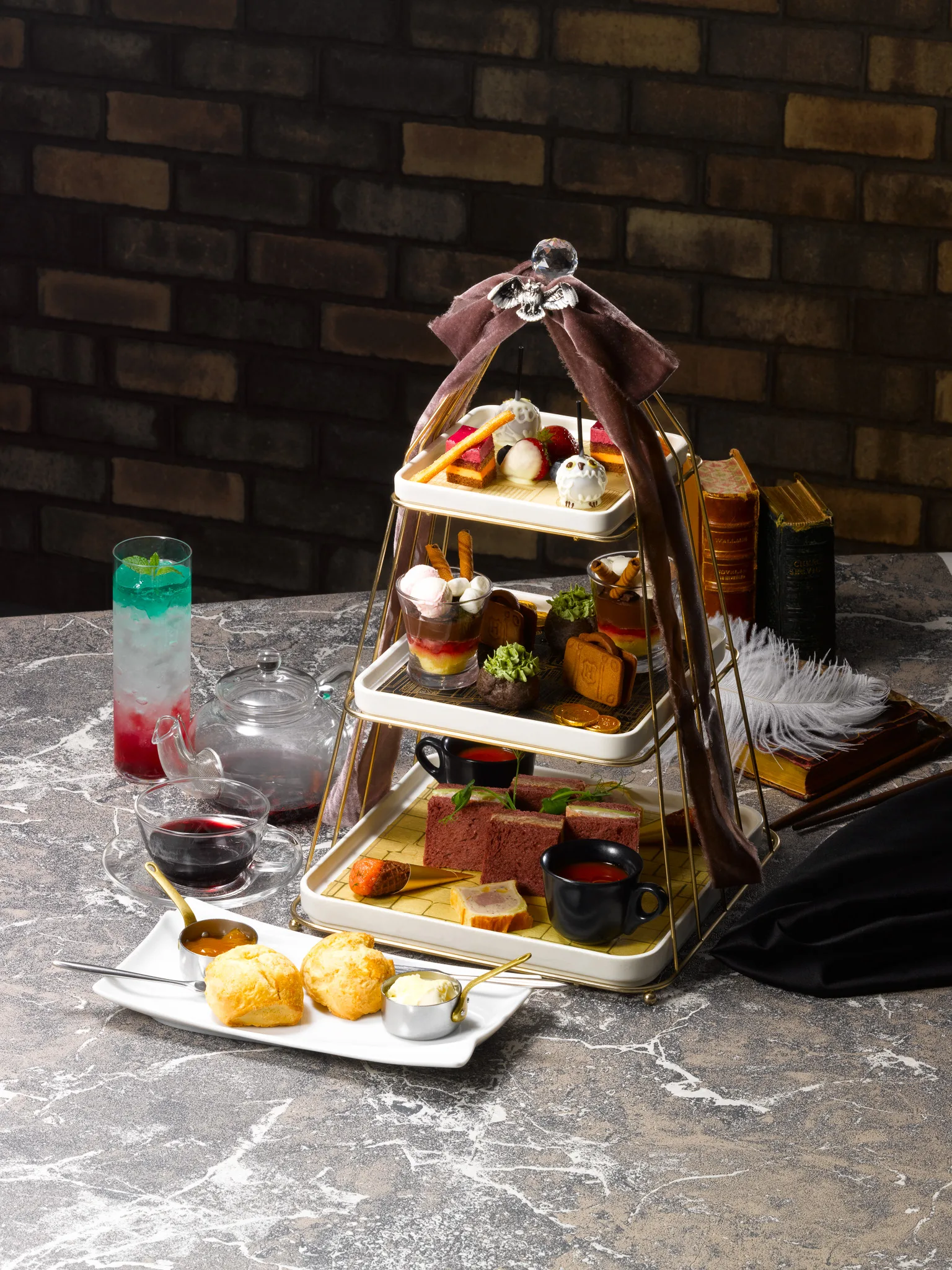 魔法界への第一歩を踏み出すあの胸高鳴る瞬間をイメージし、ハリーとハグリッドが歩いた石畳のダイアゴン横丁を思わせる世界観を、繊細なスイーツと味わい深いセイボリーで丁寧に表現しました。